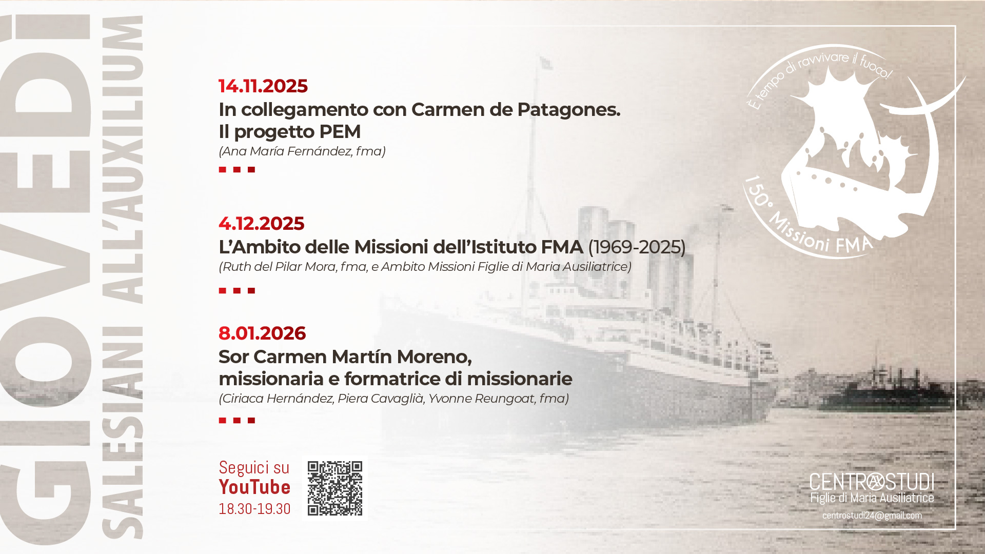 La sesta edizione dei Giovedì Salesiani all’Auxilium, prosegue la preparazione al 150° della prima spedizione missionaria delle Figlie di Maria Ausiliatrice (FMA), avvenuta il 14 novembre 1877.